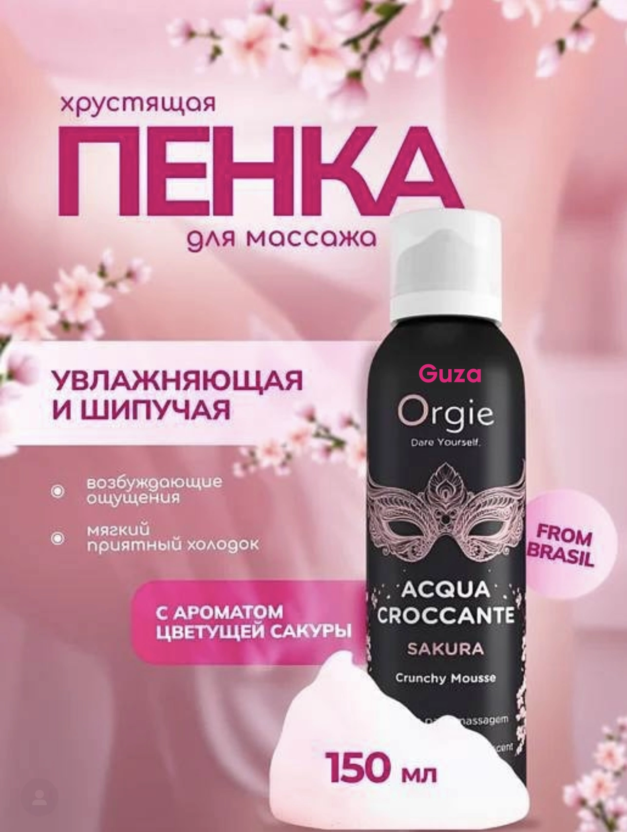 Orgie Acqua Croccante - Passion Fruit Тип: Crunchy Mousse - массаж учун эфирланувчи мусс О Асосий вазифаси: • Бу мусс танадаги энг сезгир жойларга суртилади, у билан алока килганда тоза, газлантирилган (шампанга ухшаш) хисни беради. • У жинсий лахзаларни кучайтириш ва эротик массаж учун идеал. * Унинг хусусиятлари: • Тасир: суртилганда мушаклар ва терида тингиллаб, титрок берувчи тасир килади. • Хид: Passion Fruit (тропик мевали, ёкимли хушбуй) • Куввати: 150 мл • Эр-хотинлар учун мос (хар икки жин учун кулланилиши мумкин) • Терига ёкимли ва енгил мусс шаклидаги тузилиши бор. Кандай фойдаланилади? 1. Баллонни яхшилаб чайкатинг. 2. Курилмани тури туриш холатида ушлаб, кичик микдорда мусс чикаринг. 3. Массаж килишни истаган жойга (масалан: елка, буйин, бел, сон, кукрак, интим худудлар ва х.к.) муссни суртинг. 4. Куллар билан енгил харакатлар килиб массаж килинг. Мусс терига тегиши билан «тингиллаб» реакция килади.